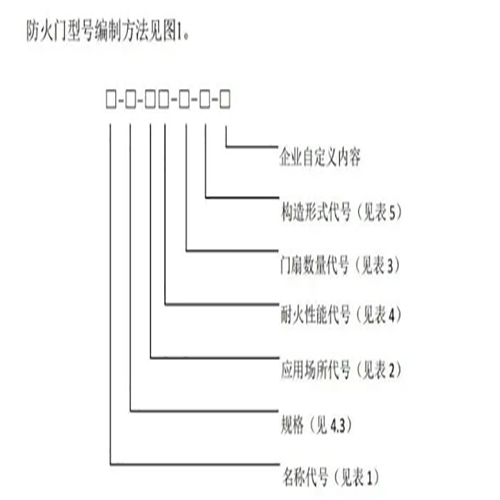 示例1:FM/Tb -1527-B1.5-2-1bg-ac,表示疏散通道常閉防火門,安裝洞口標(biāo)志寬度為1500mm、標(biāo)志高度為2700mm部分隔熱防火門耐火性能B1.5(耐火完整性≥90min、耐火隔熱性≥30min),門扇數(shù)量為2(雙扇),構(gòu)造形式為門框帶亮窗、門扇帶玻璃、帶格柵,企業(yè)自定義為ac。