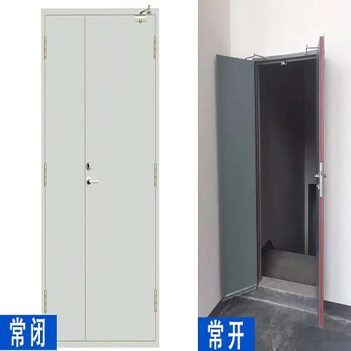用有花鍍鋅鋼板材料制作門框、門扇表面,門扇內(nèi)填充對(duì)人體無毒無害的防火門芯板,并配以防火五金配件所組成的具有不同時(shí)限耐火完整性和隔熱性的門。