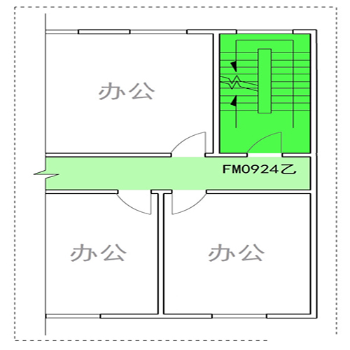 如圖所示的安全出口,采用FM0924(乙)防火門(mén),代表防火門(mén)的外框尺寸分別為0.9m和2.4m,實(shí)際洞口凈寬度可能不到0.8m,不符合要求。