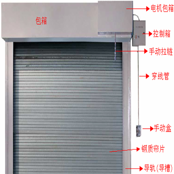 ?、?控制箱設(shè)置在卷簾旁邊,探測器、火災(zāi)報警系統(tǒng)的指令以及外部電源等均接入控制箱,由控制箱統(tǒng)一控制防火卷簾;