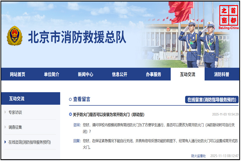 咨詢:您好,請問學(xué)校內(nèi)樓梯間原有常閉防火門為了方便學(xué)生通行,是否可以更改為常開防火門(消防聯(lián)動時可自行關(guān)閉)?