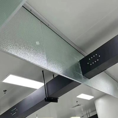 擋煙垂壁是用不燃材料制成,垂直安裝在建筑頂棚、橫梁或吊頂下,能在火災時形成一定的蓄煙空間的擋煙分隔設施。我們平時在商場等很多場所都看到設置的擋煙垂壁采用玻璃材質,而普通玻璃屬于不燃材料,那擋煙垂壁可以采用普通玻璃嗎?